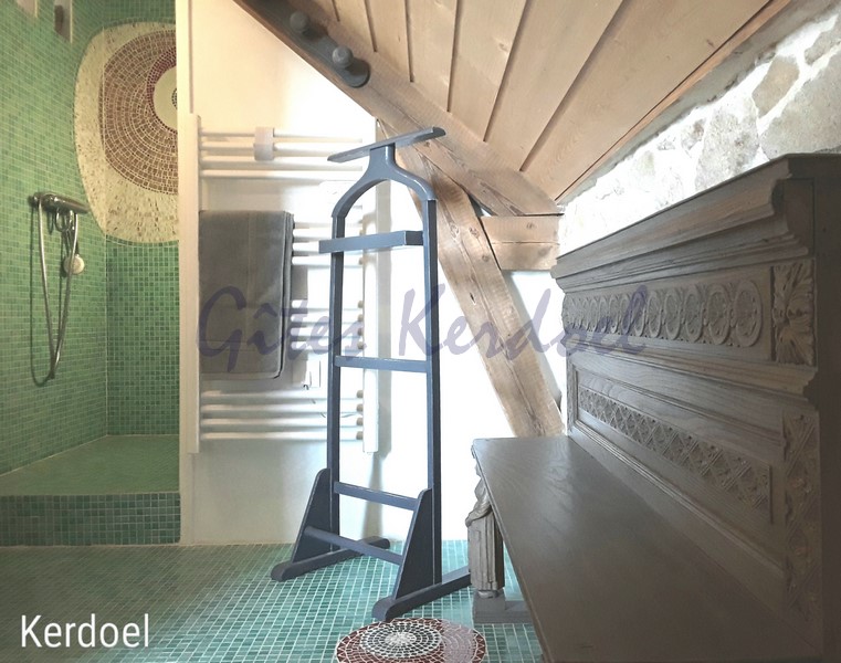 Écologique : la sous-pente est réalisée en bois brut de sciage, les murs isolés en chaux/chanvre sont recouverts d’argile crème, le mur nord est en granit. L’eau chaude et le chauffage sont gérés par une chaudière à granulés. Il vous est proposé de trier vos déchets, les poubelles de tri sont à votre disposition à côté de la salle des machines, le composteur près du parking. Prise pour la recharge de véhicules électriques et hybrides rechargeables.