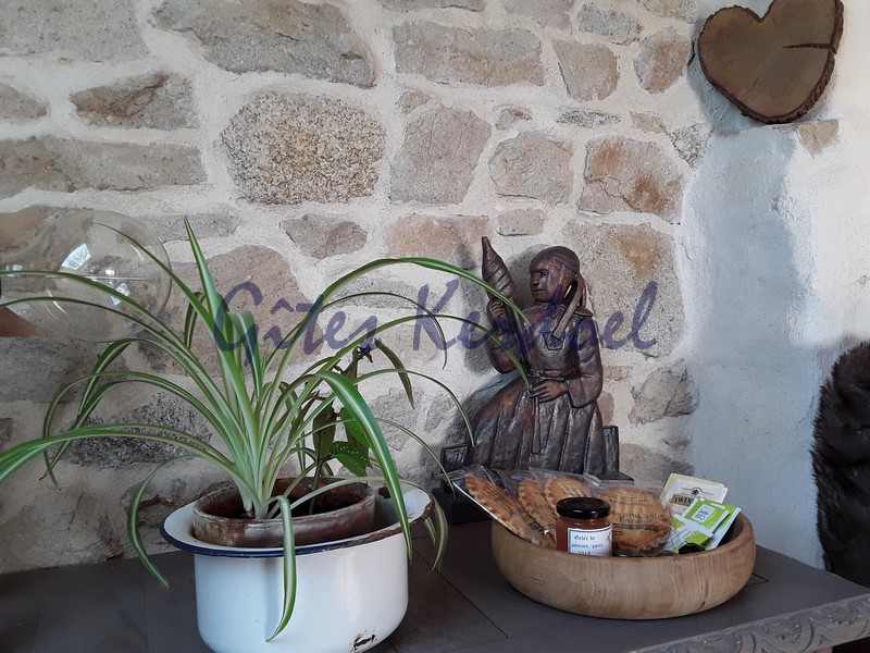 le panier d’accueuill’intérieur douillet de la grangesculpture bretonnedouche en mosaïquelits modulablesKitchenette intégrée et décodétail mosaïquelit 160×200lièvres en chaux/sable