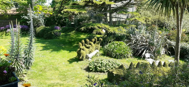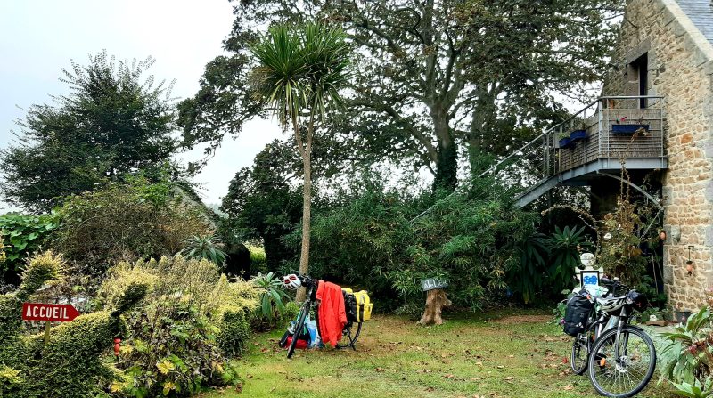La grange aux lièvres et ses topiaires2 voyageurs en vélo