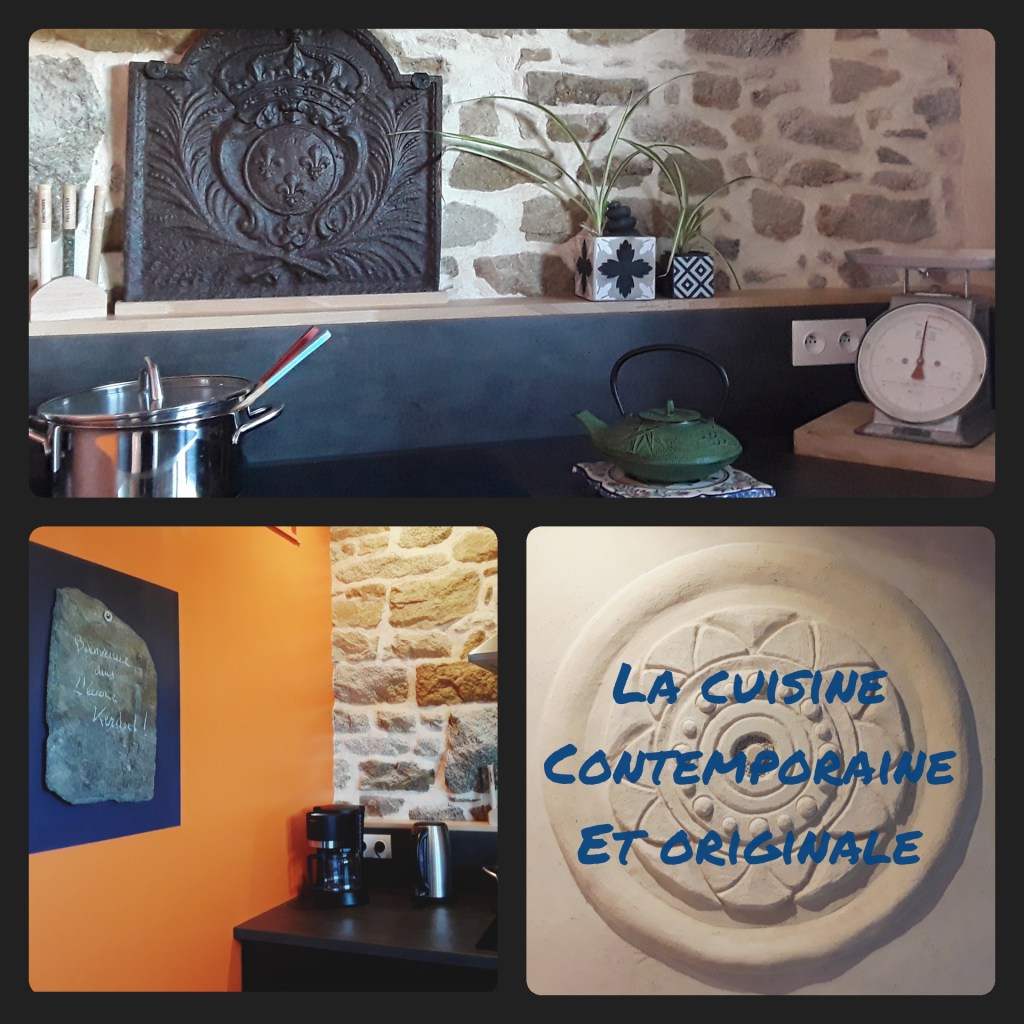 - Une cuisine contemporaine toute équipée « esprit indus »( plaque à induction, four à chaleur tournante, four micro-onde, frigo, congelateur, 3 cafetières: nespresso, à piston, à filtres…) et pour des soirées conviviales : crépière électrique, appareil à raclette, à fondue !
